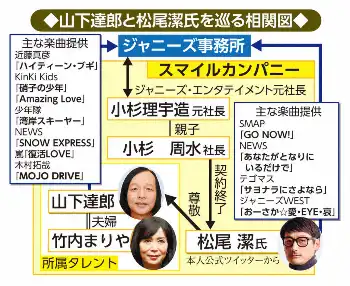 同氏をめぐっては今年7月、音楽プロダクションのスマイルカンパニーが業務委託契約を6月30日をもって双方の合意により終了したと発表。松尾氏はSNSで「15年間在籍したスマイルカンパニーとのマネージメント契約が中途で終了になりました。私がメディアでジャニーズ事務所と藤島ジュリー景子社長に言及したのが理由です。私をスマイルに誘ってくださった山下達郎さんも会社方針に賛成とのこと、残念です。今までのサポートに感謝します。バイバイ!」と、シンガー・ソングライター山下達郎の名を挙げて投稿していた。
