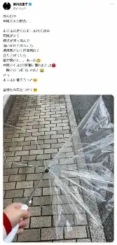 さらに「追いかけて拾ったら 携帯落として画面割れて 立ち上がったら 傘が壊れた、、あーあ 台風で4つの出来事に襲われたよ 一瞬でボコボコにされた」とぼやくと、「さっ ホテルに篭ろうっと 皆様もお気をつけて」と締めくくった。