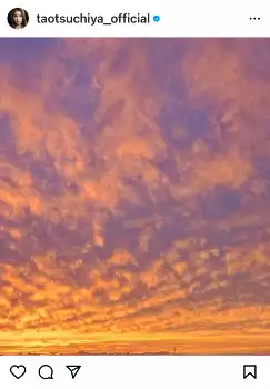 「写真は昨日の空 燃えるような夕焼けで少しうたた寝していたのですが あまりの鮮やかさに飛び起きました」と夕焼けの写真を添えた。