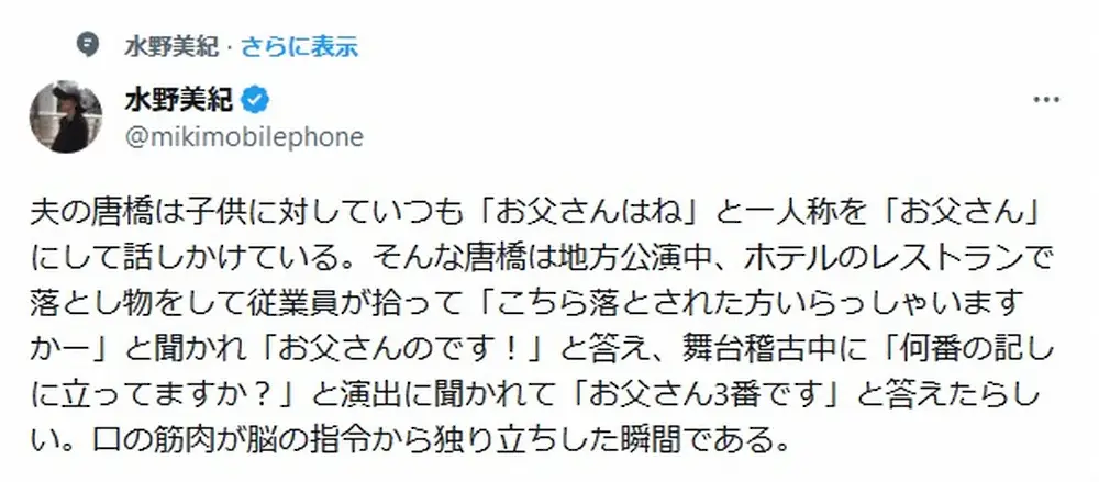 水野美紀 Photo by スポニチ 水野美紀 夫のほっこり「お父さん」エピソード明かす…ファン「声出して笑… ギャラリーで見る この記事のフォト 2023年09月11日の画像一覧 もっと見る 2023年09月11日の画像をもっと見る