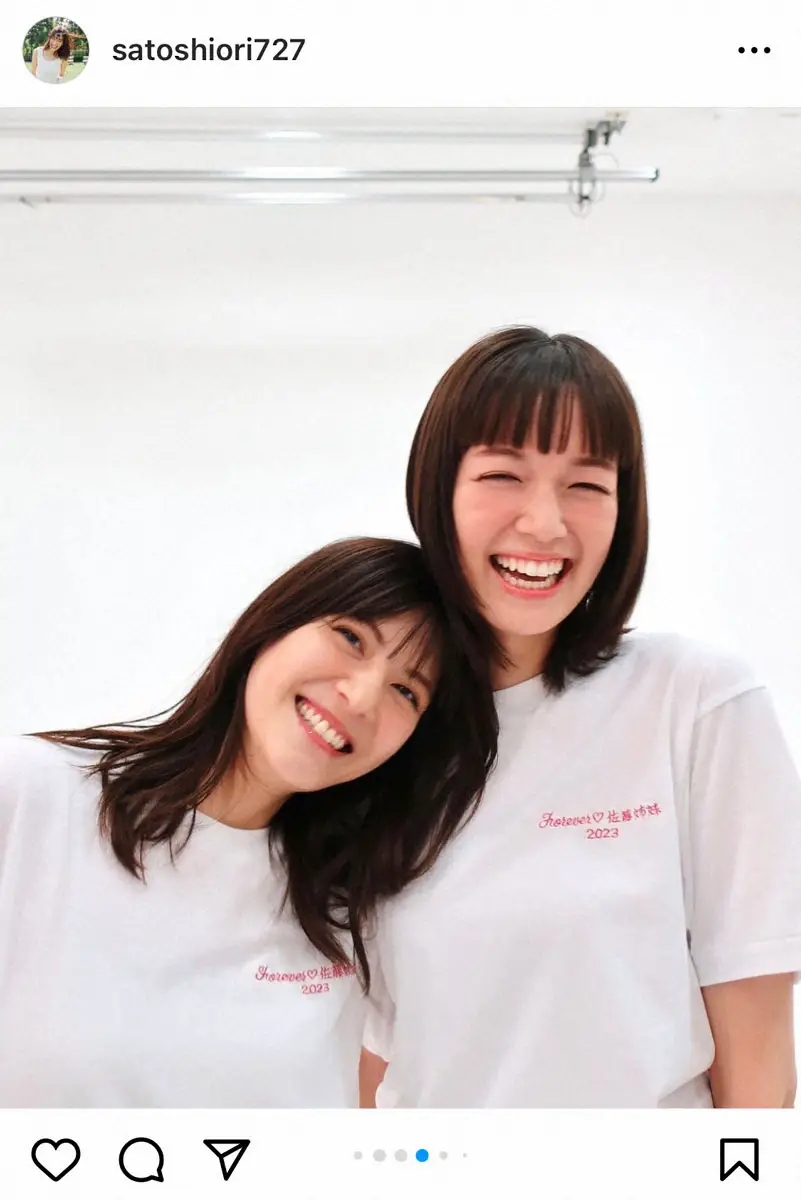 【画像・写真】佐藤栞里「ひとまず最後の、佐藤姉妹」ペアルック&おんぶ2ショットに「二人の絆は永遠」の声