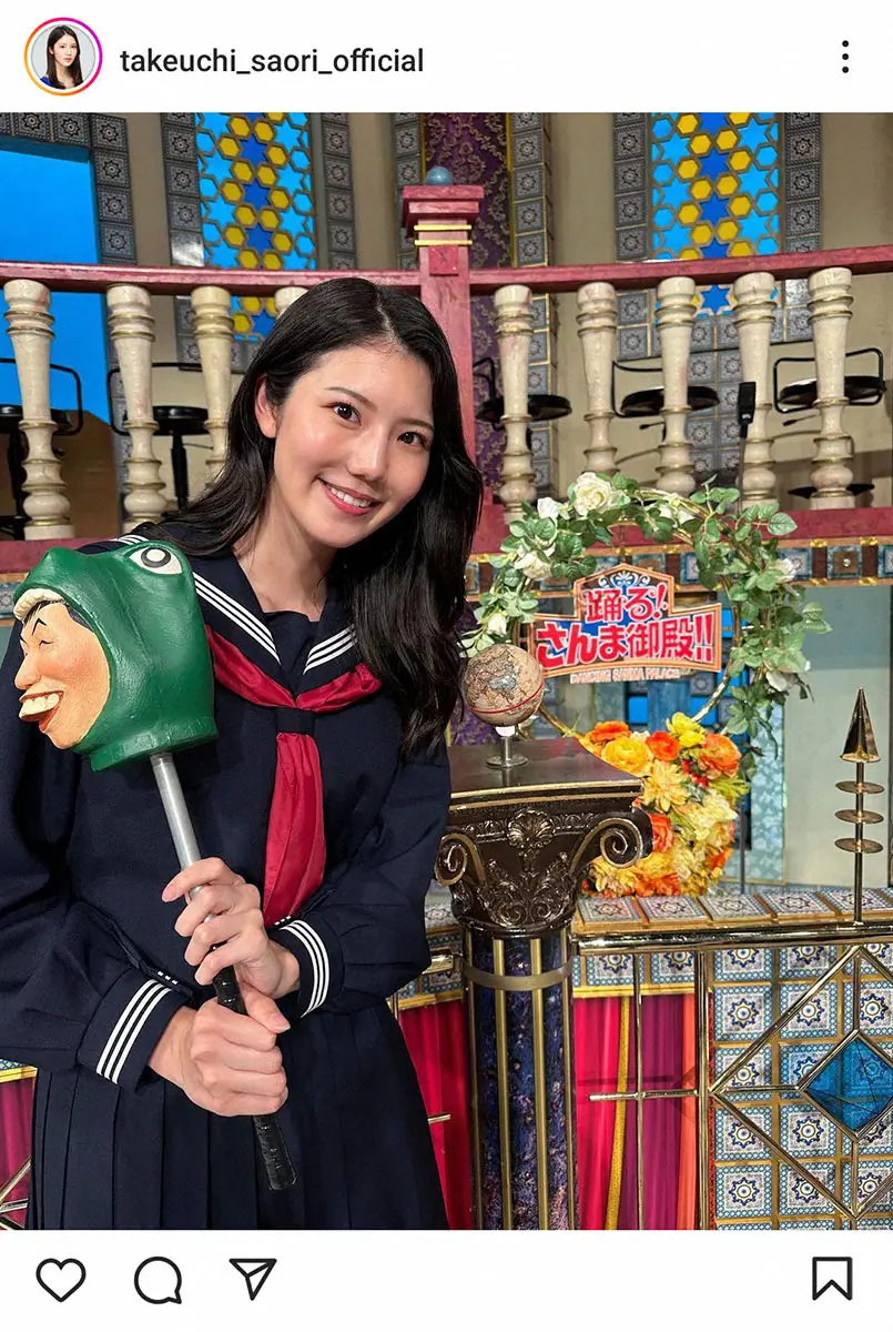 さんまから「俺が20代くらいで共演していたのが初代。そこから2代目、3代目?」と問われると、竹内は「はい、3代目、5人でデビューして」と返答。しかし「でも4人、音信不通…で、今一人で頑張ってます」と衝撃事実を明かし、スタジオが大きなどよめきに包まれた。