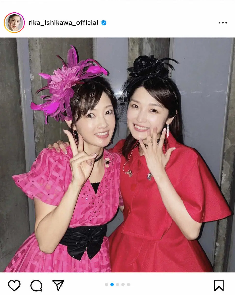 石川梨華公式インスタグラム(@rika_ishikawa_official)から。復活した「美勇伝」の3ショット。(左から)三好絵梨香、石川梨華、稲場愛香 石川梨華 ハロプロ25周年記念で「美勇伝」復活に感謝!ライブにはAKBメン… ギャラリーで見る この記事のフォト 2023年09月13日の画像一覧 もっと見る 2023年09月13日の画像をもっと見る