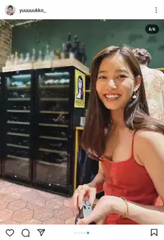 新木は、カメラとハートの絵文字のみを投稿。添えられた6枚の写真では、ワインクーラーが置かれたレストラン風の店内で、フィルムのコンパクトカメラをこちらに向けて構えながら、ナチュラルな笑顔を見せている。