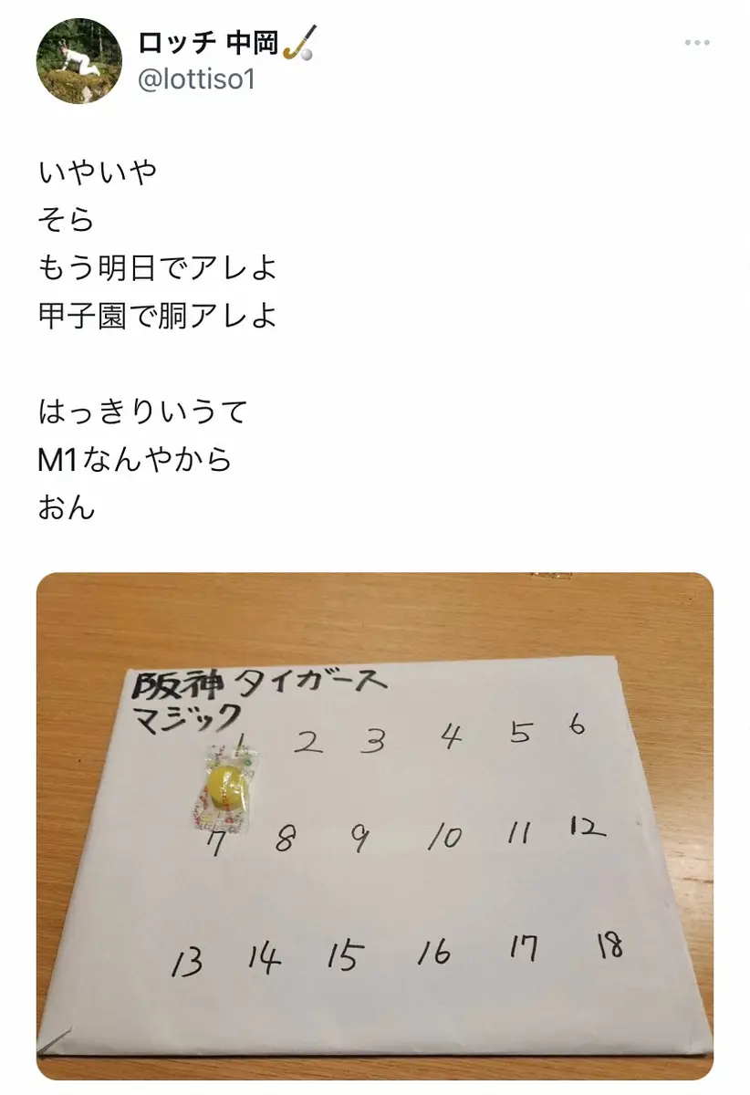 お笑いコンビ「ロッチ」の中岡創一 Photo by スポニチ 虎党のロッチ・中岡 お手製“パイン飴マジックカレンダー”も「1」 18年ぶ… ギャラリーで見る この記事のフォト 2023年09月14日の画像一覧 もっと見る 2023年09月14日の画像をもっと見る