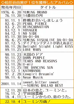 ユーミンがギネス世界記録保持者に 6年代連続アルバム1位 エルトン・ジョン超え「やったぜ」