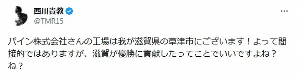 歌手の西川貴教 Photo by スポニチ 西川貴教 観光大使、阪神に便乗!?パインアメの工場所在地PRで「滋賀が優… ギャラリーで見る この記事のフォト 2023年09月15日の画像一覧 もっと見る 2023年09月15日の画像をもっと見る