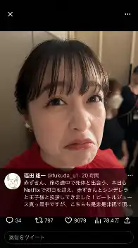 福田氏は14日に「赤ずきん、旅の途中で死体と出会う、本日らNetflixで初日を迎え、赤ずきんとシンデレラと王子様と挨拶してきました!ビートルジュース真っ最中ですが、こちらも是非是非観て頂きたい!僕の作品としてはとても良く出来てます!CGとかこだわりまくったからね!本当豪華ですぜ(原文ママ)」と告知。