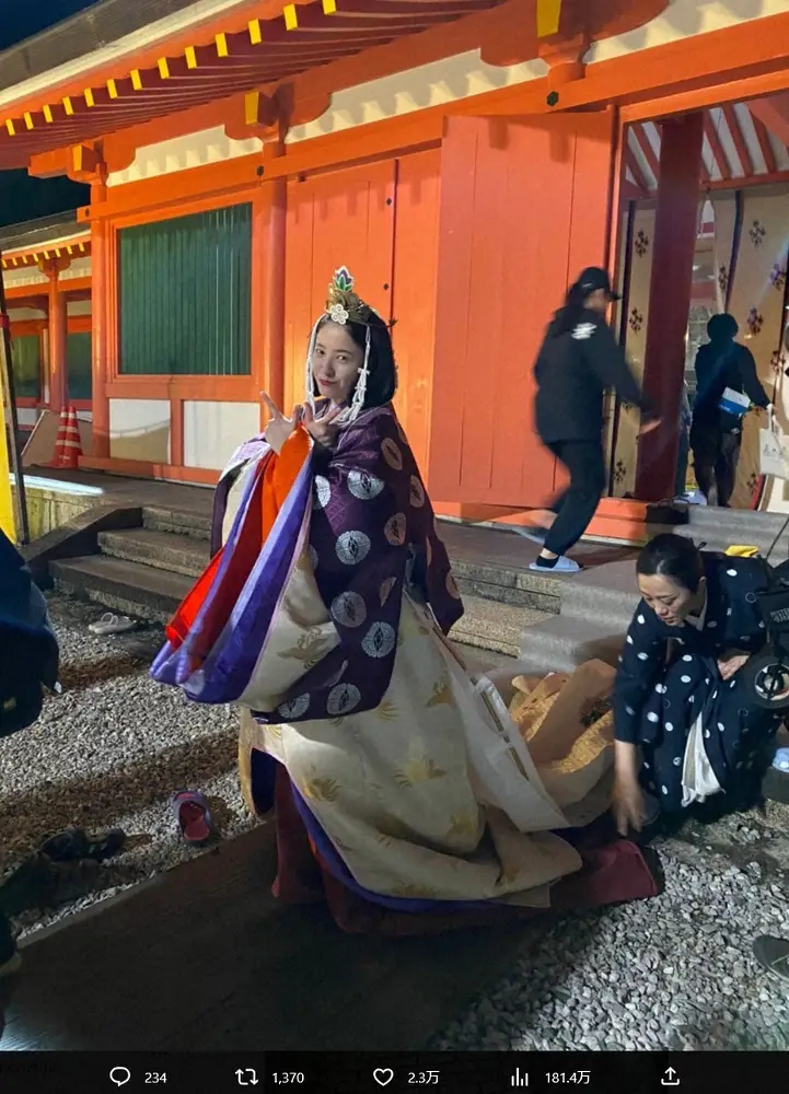 女優の吉高由里子(35)が16日までに自身のX(旧ツイッター)を更新。2024年のNHK大河ドラマ「光る君へ」の撮影でのオフショットを披露した。