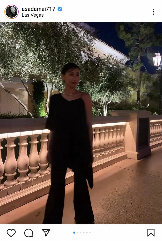 この日までの投稿で、米ラスベガスに旅行していたことを明かしていた舞は「Memories」と書き出すと、黒の片方の肩を出したトップスに、パンツ姿の自身のショットをアップ。