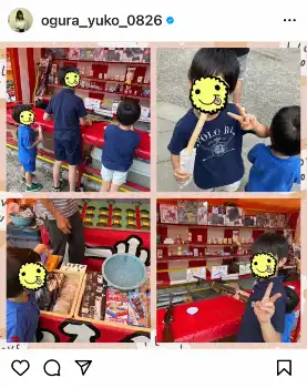 子供たちが射的などを楽しむ様子を公開し、「ゲームも色々とやりました」と小倉。「景品を選ぶ時に自分が欲しい物ではなく弟が欲しい物を一生懸命考えていたお兄ちゃん達」とつづった。