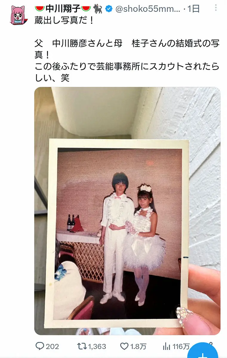 中川翔子のX(@shoko55mmts)から 中川翔子 父の命日に蔵出し写真披露 結婚式後芸能事務所にスカウトされ… ギャラリーで見る この記事のフォト 2023年09月18日の画像一覧 もっと見る 2023年09月18日の画像をもっと見る