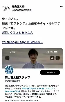 森山は「偽アカさん」として、「森山直太朗スタッフ」を名乗るアカウントの画像を投稿。そして「映画『ロストケア』主題歌のタイトルがラテン系で草」とユーモアを交えツッコミを入れた。