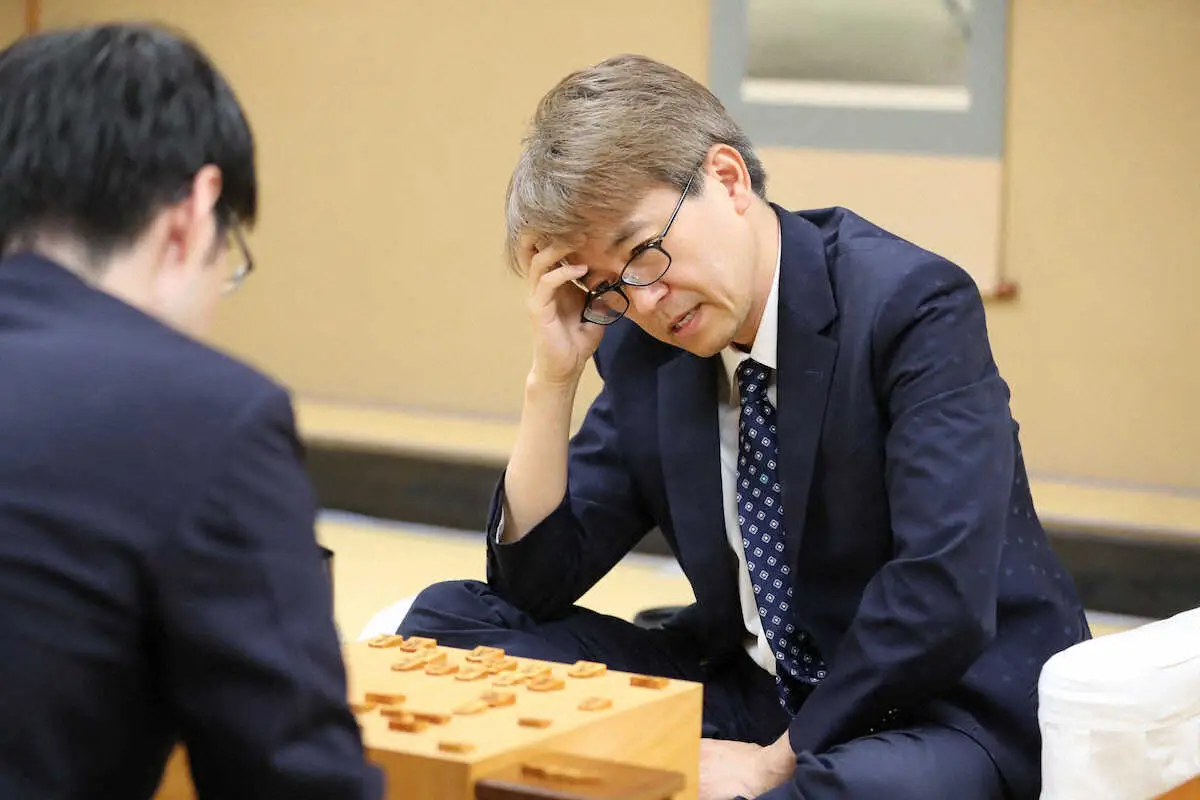 先手番で選択した戦型は互いの飛車先の歩を突き合う「相掛かり」。序盤で早々と先例から離れ、超難解なねじり合いになる傾向が強い好戦的な布陣だ。実際のところ「昼休み以降、まとめ方が分からなくなって…」と、眉間にしわを寄せる場面が多かった本譜。飛車と角を交換したものの、その角を利用されて左辺から崩され、馬2枚をつくられる展開は「かなり手厚いので、ちょっと悪いんじゃないか」と明かす。