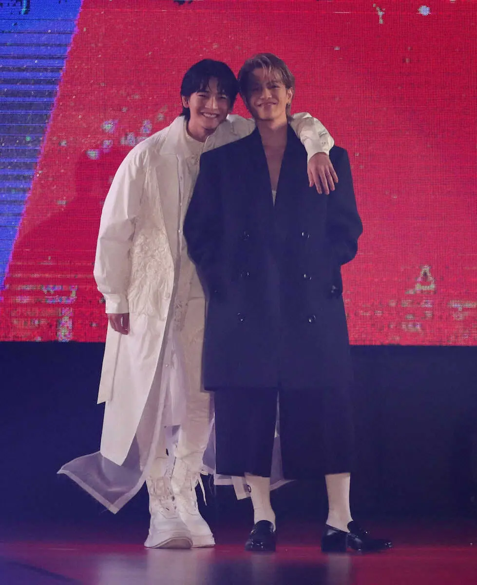 ダブル主演する10月20日スタートのTBSドラマ「フェルマーの料理」(金曜後10・00)のスペシャルステージに登場。2人が肩を組むと会場から大歓声が上がった。