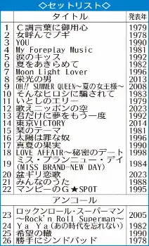 アンコールはご当地ソング。JR茅ケ崎駅で東海道線の発車メロディーに使われている「希望の轍」から、♪砂まじりの茅ケ崎――で始まるデビュー曲「勝手にシンドバッド」へ。「やれんのか!茅ケ崎!」とあおる桑田に、観客が「イェー!」と大歓声で応えた。