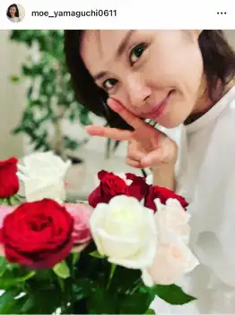 山口は「結婚9年目に突入しました」と報告。「すっかり忘れられたかと思ってたら覚えていたようです…そぅ今日は結婚記念日」とつづり、「仕事帰りに慌ててお花を買ってきたようです。笑」と、田中が仕事帰りに慌ててバラの花束を買いに行ってくれたと明かし、「ありがとう!!」と感謝を記した。