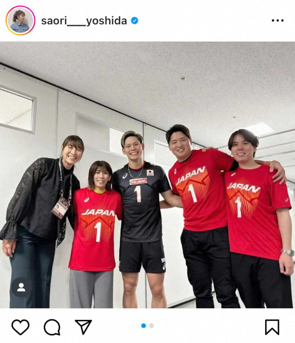 女子レスリング五輪3連覇の吉田沙保里さん(41)が7日、自身のインスタグラムを更新。パリ五輪切符を掛けて戦っている日本男子バレーを激励した様子を投稿した。