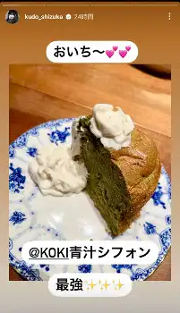 歌手の工藤静香(53)が7日までに自身のインスタグラムのストーリーズを更新。次女でモデルののKoki,(20)作った青汁シフォンケーキを絶賛した。