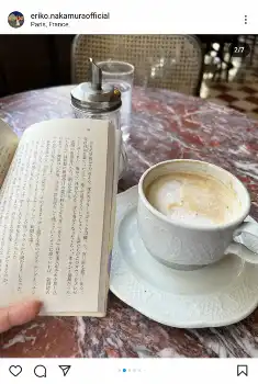 中村は、「思いがけずカフェタイム」とコメント。20年来の愛用品という目覚まし時計が壊れ、その修理を待つ間、カフェで読書する様子などを投稿した。