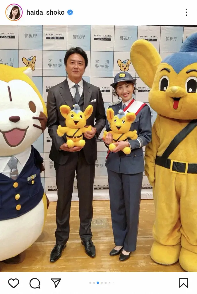 【画像・写真】はいだしょうこ 一日警察署長の制服姿で原田龍二と2ショット「逮捕されたい」「めちゃくちゃ美人」の声
