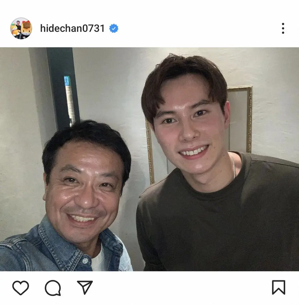 タレントの中山秀征(56)が12日、自身のインスタグラムを更新。バレーボール日本代表の高橋藍(22)との2ショットを披露した。