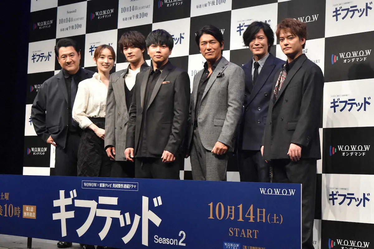 男性3人組「NEWS」の増田貴久(37)と男性6人組「美 少年」の浮所飛貴(21)が12日、都内で、WOWOWドラマ「ギフテッド Season2」(あす14日スタート、後10・00)の完成披露試写会に出席した。天才刑事と殺人犯を見抜く目を持つ高校生によるバディを演じる。「…Season1」から続けての撮影で浮所は「(役は)バディ感が増して、心の距離が近くなった。(実際は)初日から0距離でした」と満面の笑み。増田は「距離感0と思っているのは一方通行です」としながらも「現場の空気を明るくしてくれる」とツンデレな一面を見せた。