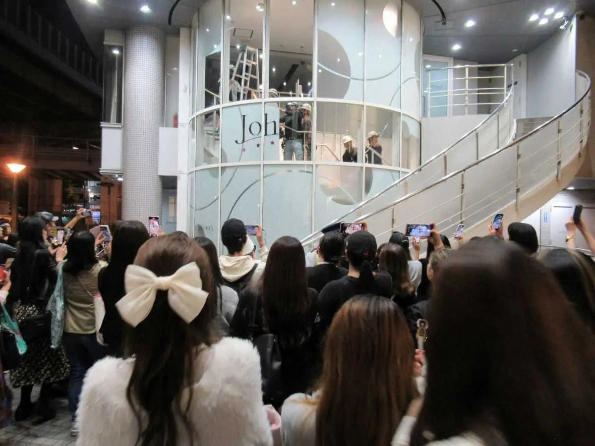 ジャニー喜多川氏の性加害問題でジャニーズ事務所の社名が17日付で変更。所属タレントのグッズを販売する「ジャニーズショップ」も閉店する。ショップ最終日となった16日は大阪市北区の「ジャニーズショップ大阪」もファン、報道陣で一日中にぎわっていた。午後9時頃から店舗2階部分の大窓に貼られた「Johnny’s」と描かれたフィルム状の社名壁紙が15分ほどで剥がされ、最後まで残って見守っていた100人のファンから悲鳴があがった。