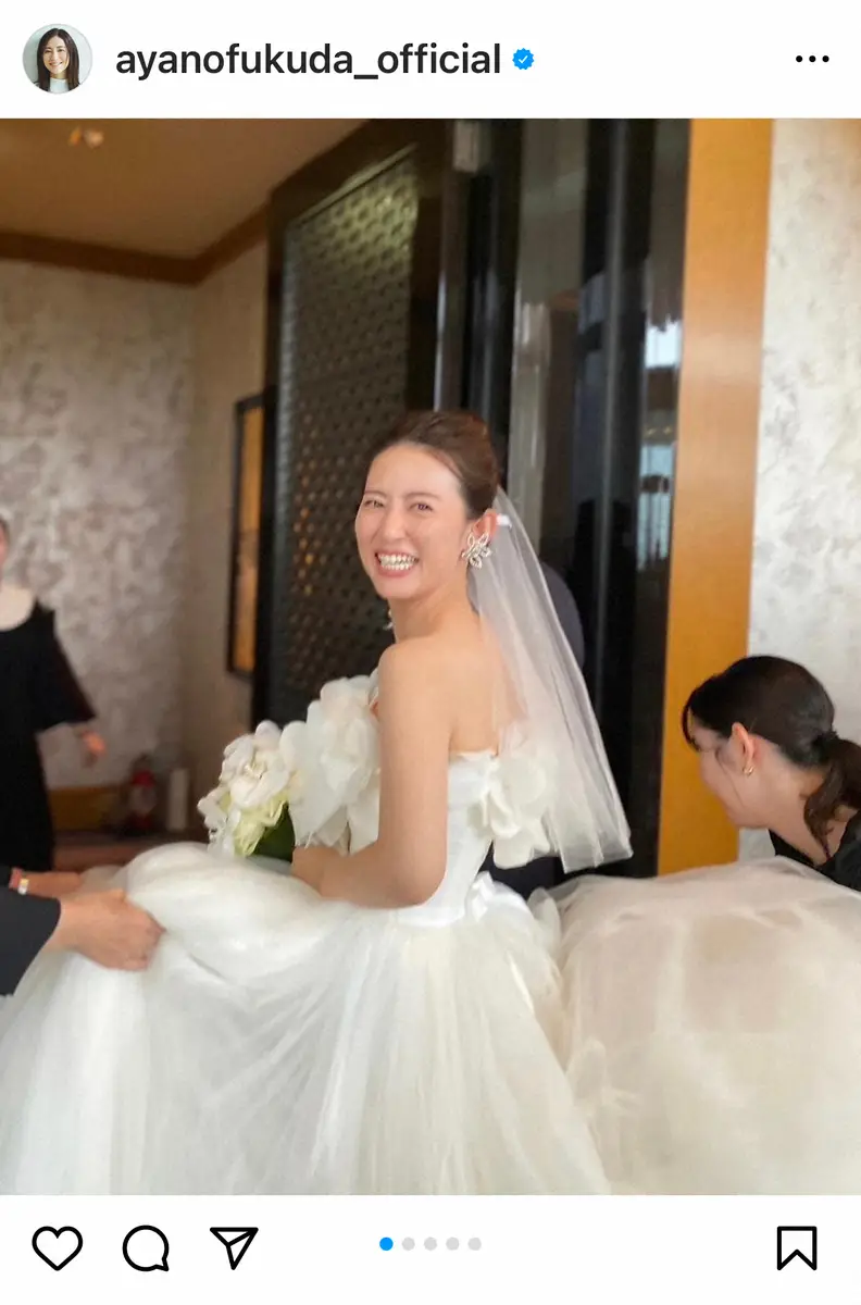 タレントの福田彩乃(35)が19日、自身のインスタグラムを更新。結婚式を行ったことを報告し、花嫁姿を公開した。