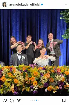 福田は「大好きな人たちに見守られながら 先日、約3年越しの結婚式を挙げることができました」と2020年に結婚した夫と挙式を報告。「コロナ禍で延期が重なり中止になってしまっていた3年前。でも3ヶ月ほど前に急遽決まり、皆さまのおかげでとってもとっても素敵な式を挙げることができました」と感謝した。