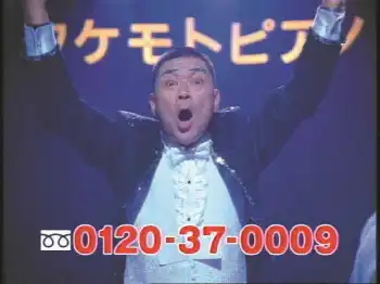 財津一郎さんが出演したタケモトピアノのCMのワンシーン(タケモトピアノ提供)