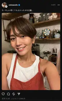 和田は自身のインスタグラムストーリーズで白タンクトップにエプロン姿の自撮りショットとともに「髪切った。家族に不評の前髪」と明かした。