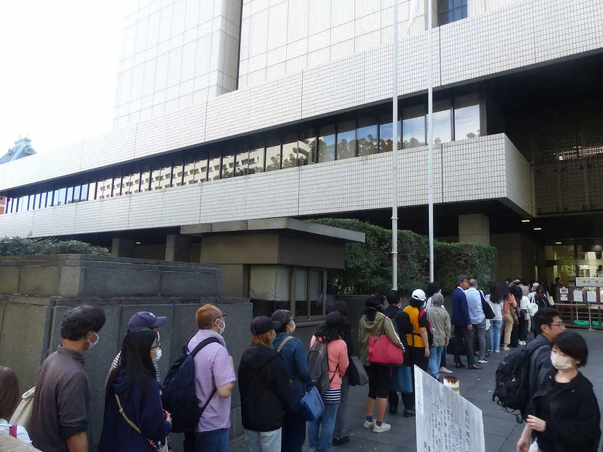 市川猿之助被告の初公判の傍聴券を求めて列をつくる人々