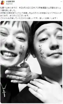 小笠原は大学在学中、フジテレビ系で放送されていた恋愛バラエティー番組「あいのり」に出演し人気が上昇。三田とは2020年6月20日に結婚を発表していた。