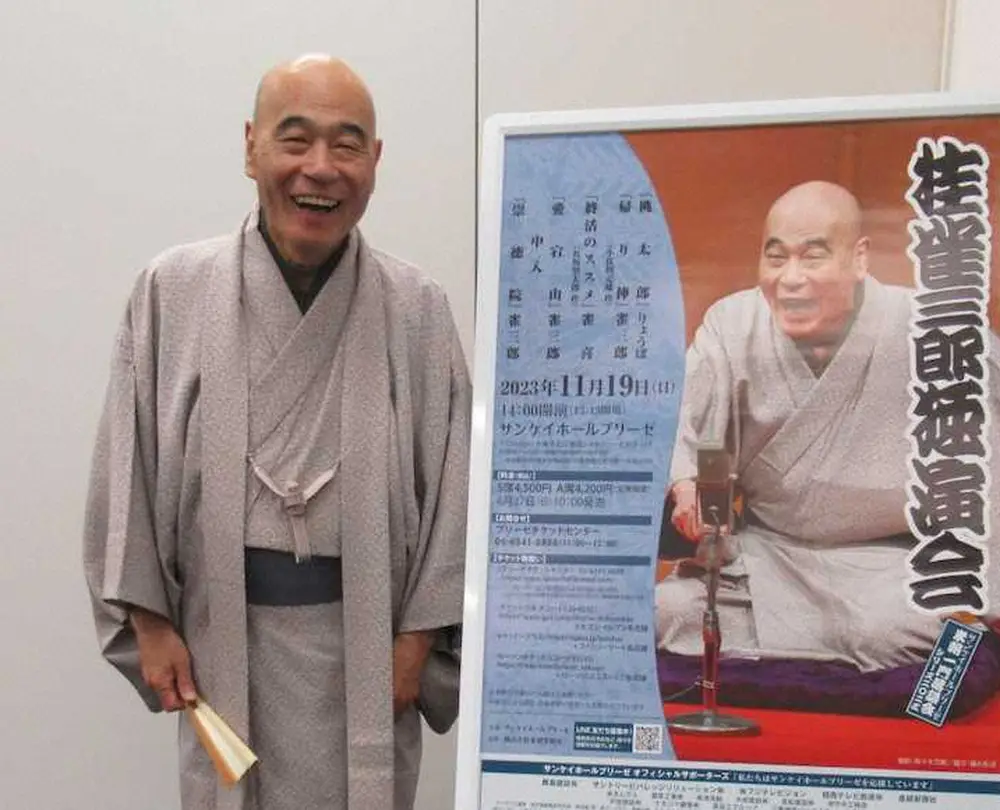 桂雀三郎(74)が20日、大阪市内で「桂雀三郎独演会」(11月19日、サンケイホールブリーゼ)の取材会に登場した。