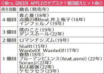 Mrs. GREEN APPLE 初の紅白内定 今夏サブスク席巻、ドーム公演も高評価