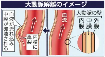 最近では21年、人気漫画「ベルセルク」の作者三浦建太郎さんが54歳で急性大動脈解離で死去。落語家でタレントの笑福亭笑瓶さんは15年12月に千葉県のゴルフ場で大動脈解離で倒れ、緊急搬送された。この時は一命を取り留めたが、今年2月に急性大動脈解離のため66歳で死去した。