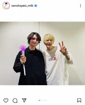 5人組ダンスボーカルグループ「M!LK(ミルク)」の佐野勇斗(25)が24日までに自身のインスタグラムを更新。俳優・横浜流星(27)との2ショットを披露した。