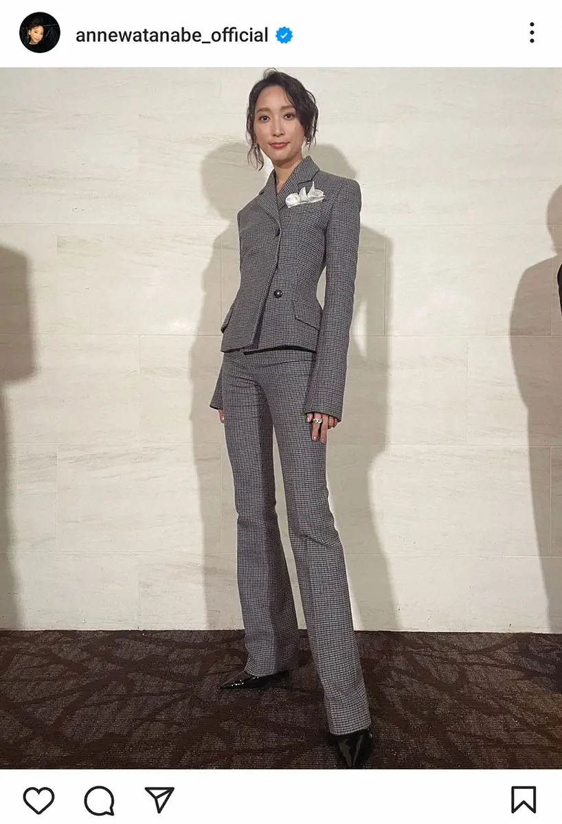 杏はグレイッシュなチェックのパンツスーツ姿の写真を投稿し「#翔んで埼玉ジャパンプレミア」と記した。