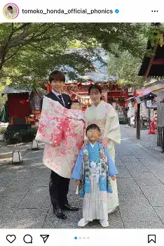 フリーアナウンサーの本田朋子(40)が26日、自身のインスタグラムを更新し、長男の七五三に訪れた家族ショットを披露した。