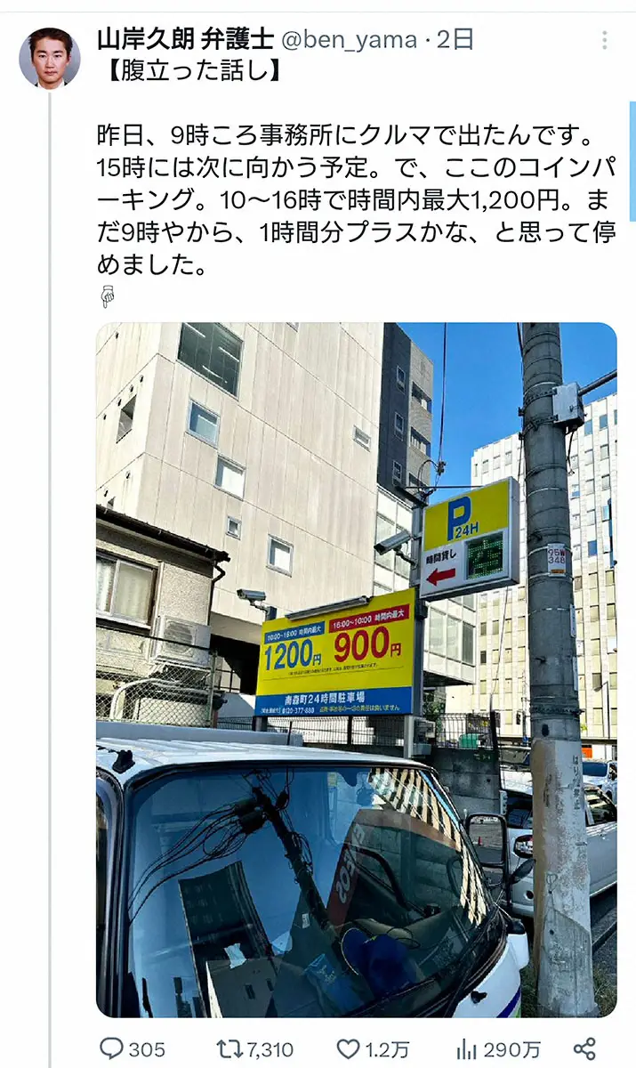 【画像・写真】山岸久朗弁護士 分かりづらい料金表示の駐車場で高額請求に怒り「いち消費者として許すことできない」