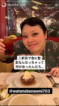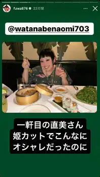 また、食事中の渡辺の髪型を比較した2枚の写真を添え「髪型だけ最後変だったけどあとはマジ憧れる!!!」と記した。