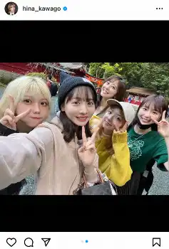 川後は「9月末のソロデビューから忙しすぎたので、大舞台のフェスの次の日は旧友とのんびり箱根に」と和田まあや、能條愛未、高山一実、斎藤ちはるの1期生5人で箱根を満喫する写真を投稿した。