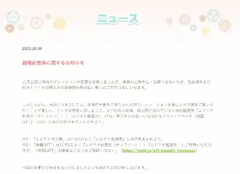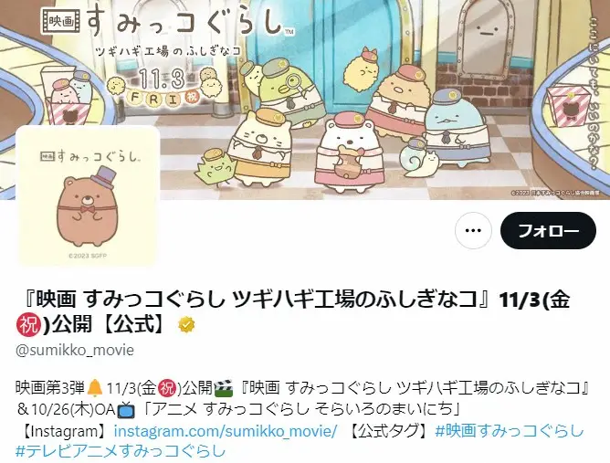 11月3日公開の映画「映画 すみっコぐらし ツギハギ工場のふしぎなコ」の公式サイトが更新され、今月12日に元V6の井ノ原快彦のナレーション降板を発表した影響を受け、払い戻しを求める声などに対する対応策を発表した。