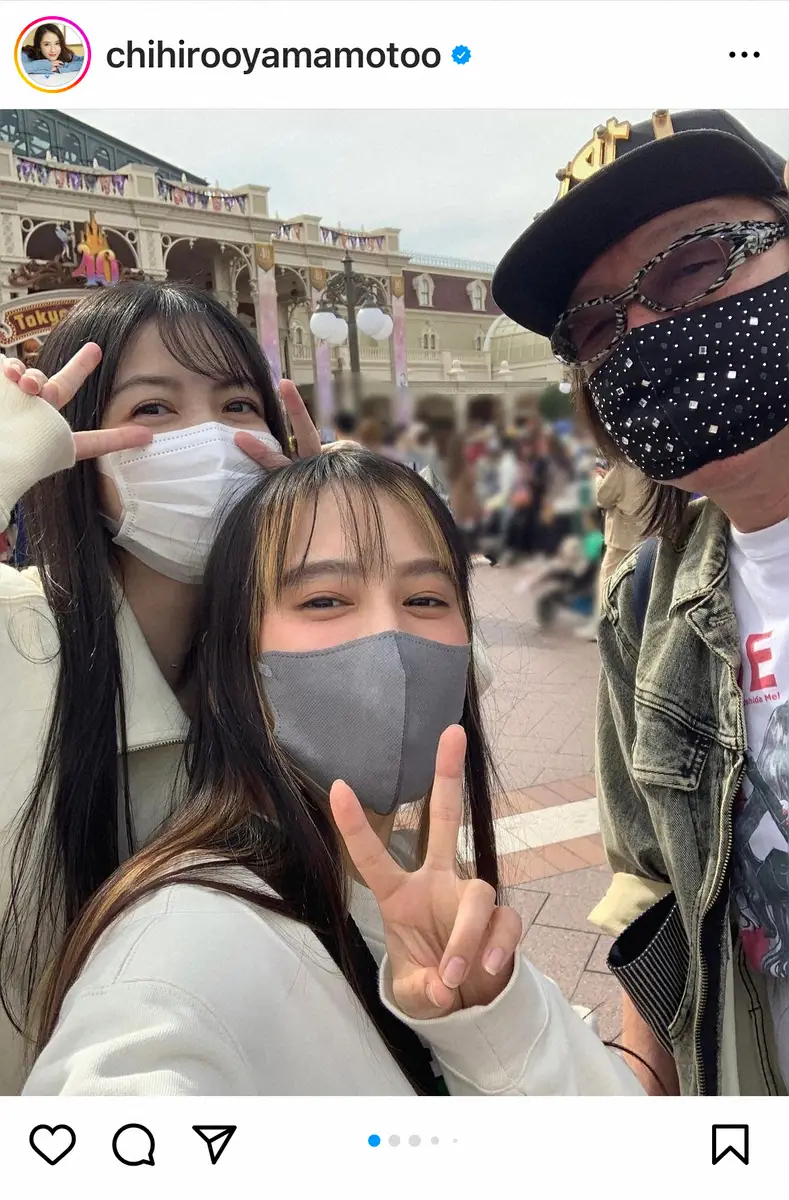 女優の山本千尋(27)が10月31日、自身のインスタグラムを更新。俳優の古田新太(57)、「乃木坂46」の久保史緒里(22)とともに東京ディズニーランドを満喫するショットを公開した。
