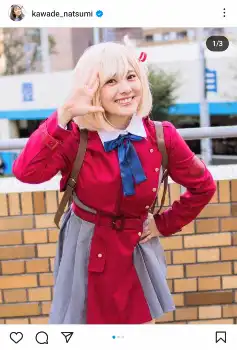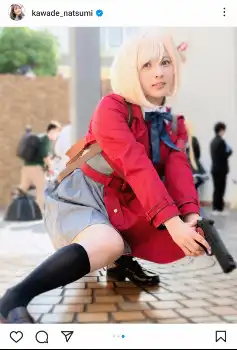 この投稿には「お似合いです」「リアル千束」「キャラになりきってますね」「仕上がりがレベチ」「これで初めてってクオリティ高すぎる」など絶賛するコメントや、「こういう事するんですね、意外でびっくりしました」「スマホを開いてびっくり」「「うっそー、なっちゃん?!」といった驚きの声も寄せられた。