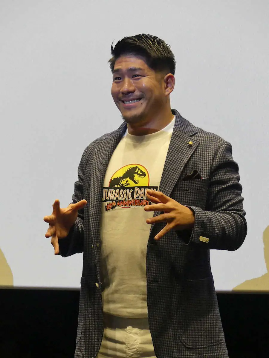 ラグビー日本代表の松田力也(29)が2日、都内で行われた「ジュラシック・パーク」30周年記念上映イベントに登場した。