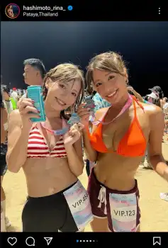 「タイから帰国しました~パタヤビーチビキニマラソン!アンバサダーを務めさせていただきました!」と報告。