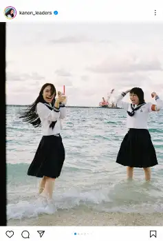 新しい学校のリーダーズ・KANON セーラー服×海辺の全力青春写真にファン「鼻血出た」「エモエモ」