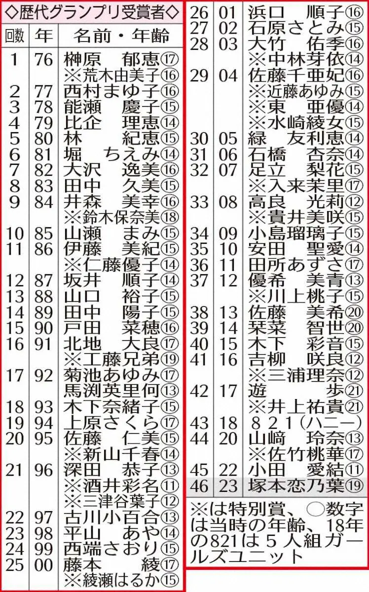 フォトセッションを行う(左から)特別賞の松岡香穂さん、グランプリの塚本恋乃葉さん、準グランプリの畠中夢叶さん(撮影・久冨木 修) Photo by スポニチ 塚本恋乃葉さんが「ホリプロスカウトキャラバン」グランプリ 父は元広島… ギャラリーで見る この記事のフォト 2023年11月05日の画像一覧 もっと見る 2023年11月05日の画像をもっと見る
